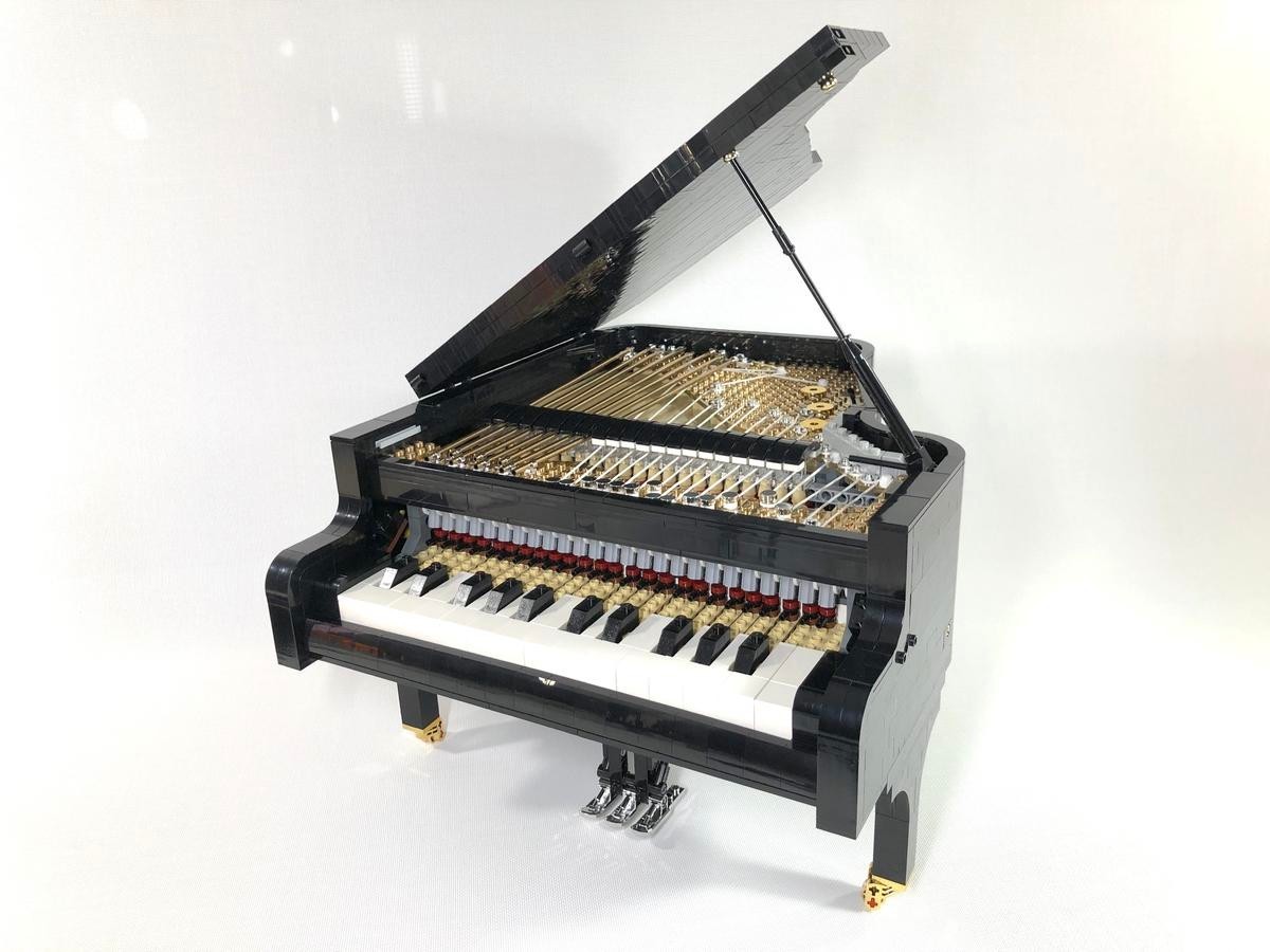钢琴老师Donny准确捕捉到钢琴的每一个机械设计细节,用2,798块乐高零件拼搭出可以真实弹奏的钢琴,巧妙运用合适的弧形砖勾勒出曲线造型,琴盖、键盘盖、琴键、踏板、乐谱架、支撑杆,另搭配有可升降琴凳,高度再现了真实钢琴的外观。整个作品最大的亮点就是拥有可弹奏的琴键,25个琴键各自连接独立的弦锤,与内部结构相联动,通过乐高机电组实现自动演奏,满足音乐爱好者的音乐梦。