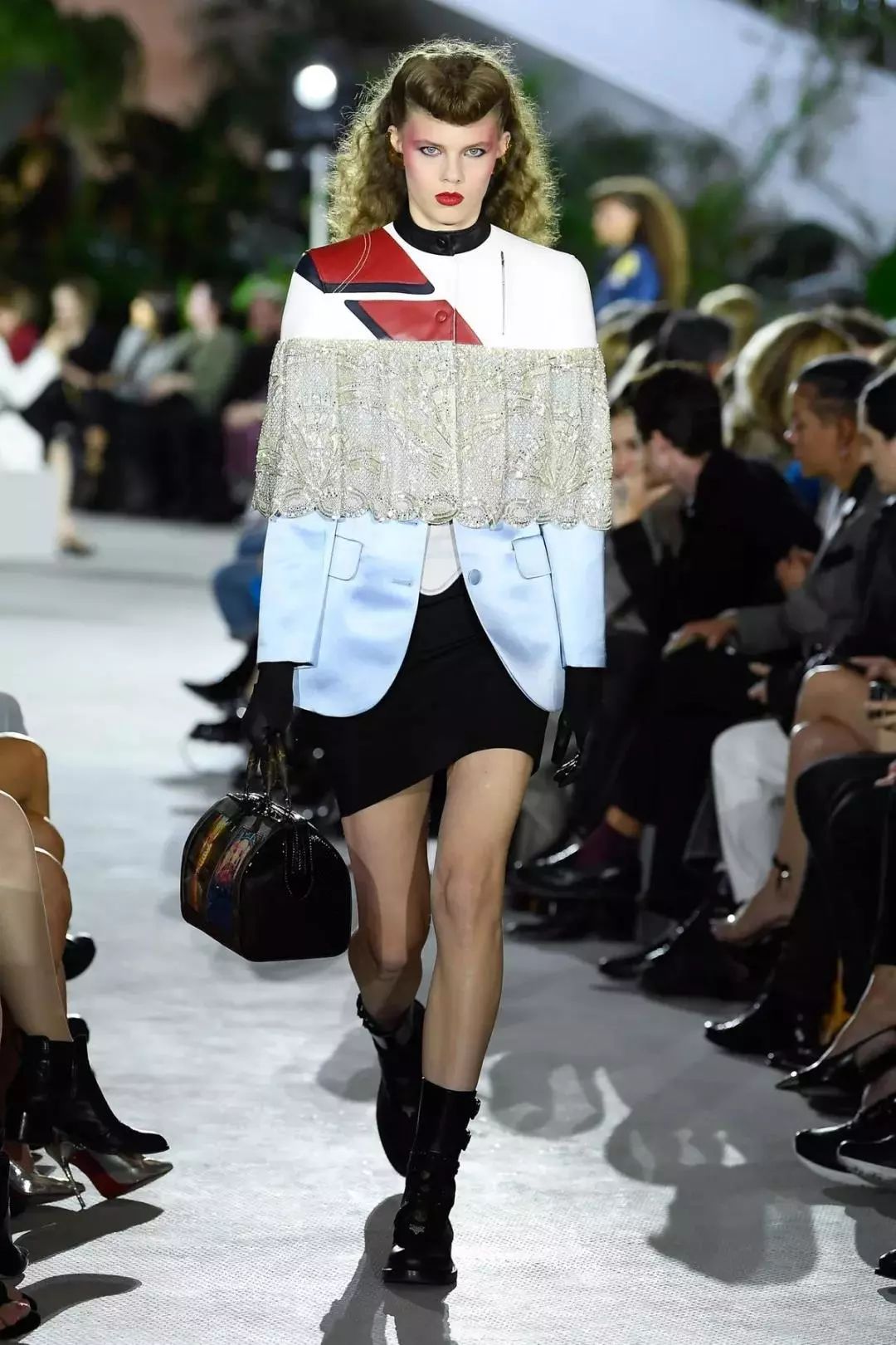 恐龙蛋的出场本已经掀起了一波高潮,而秀场上很快又被随后登场的飞碟包而惊艳不已。形状独特的飞碟包,轮廓类似于童年玩具陀螺和飞碟的组合,这样的科技感与创意让人不得不拍手叫绝。
